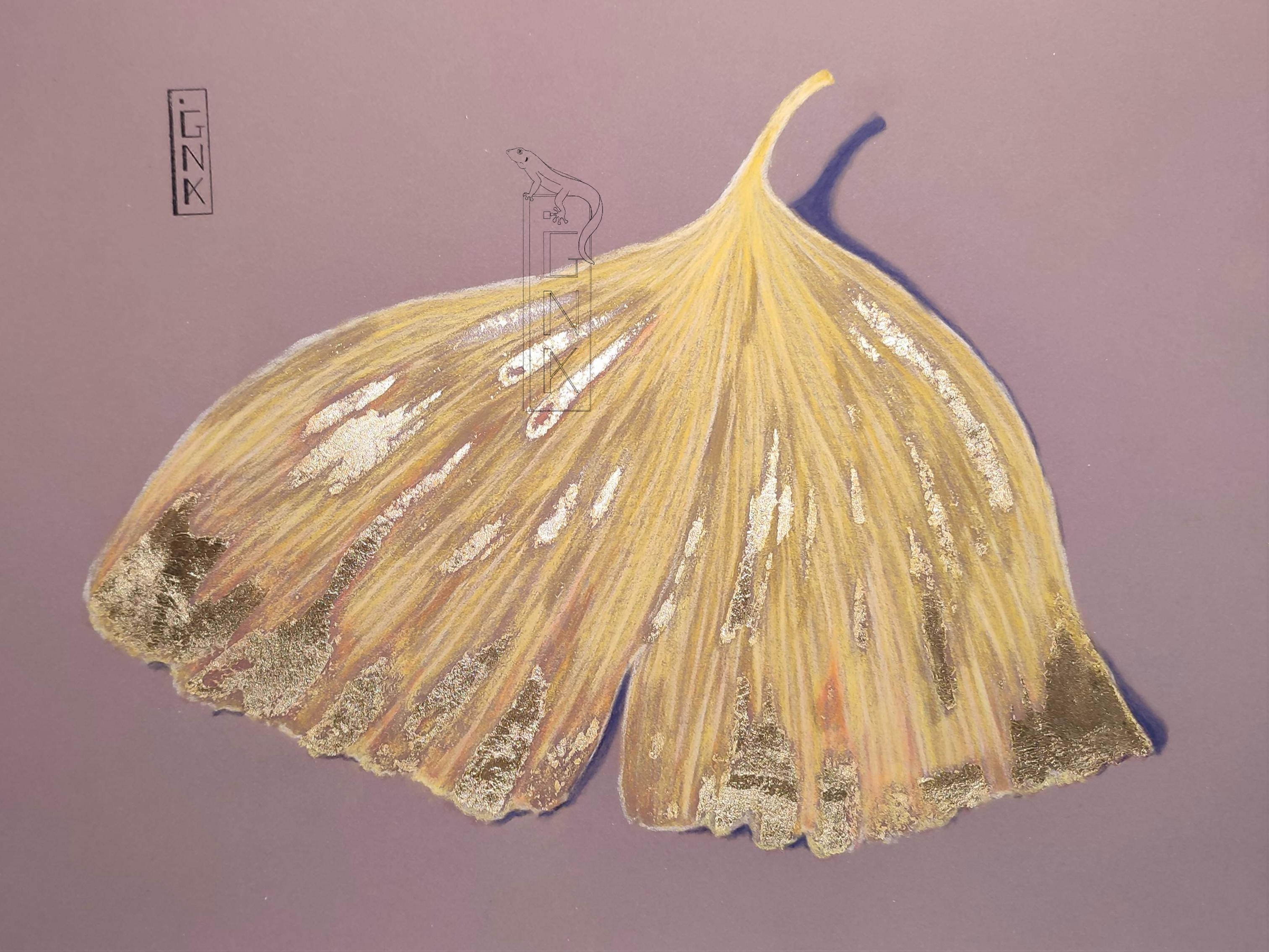 pastels secs et feuille d'or sur pastelmat